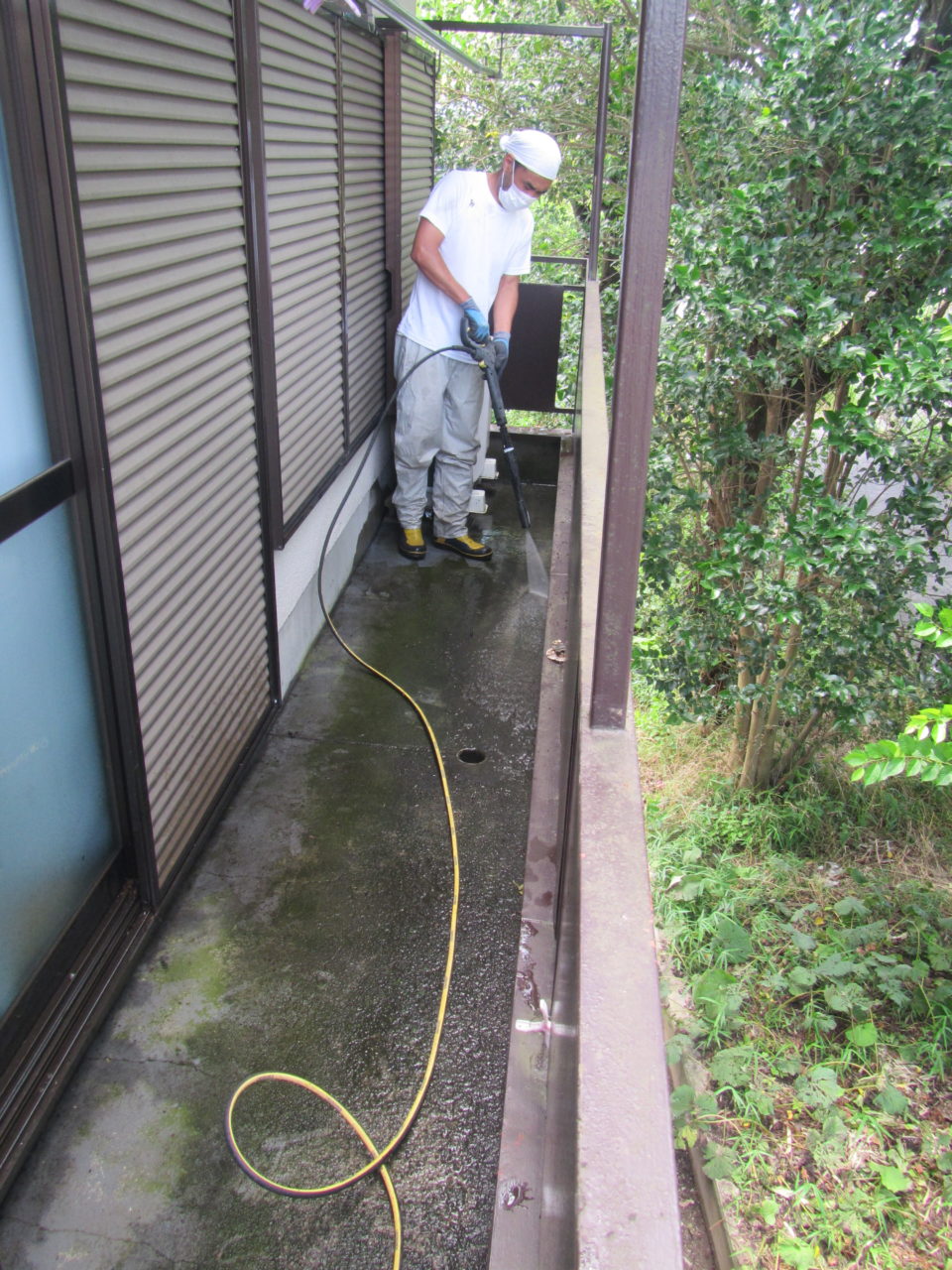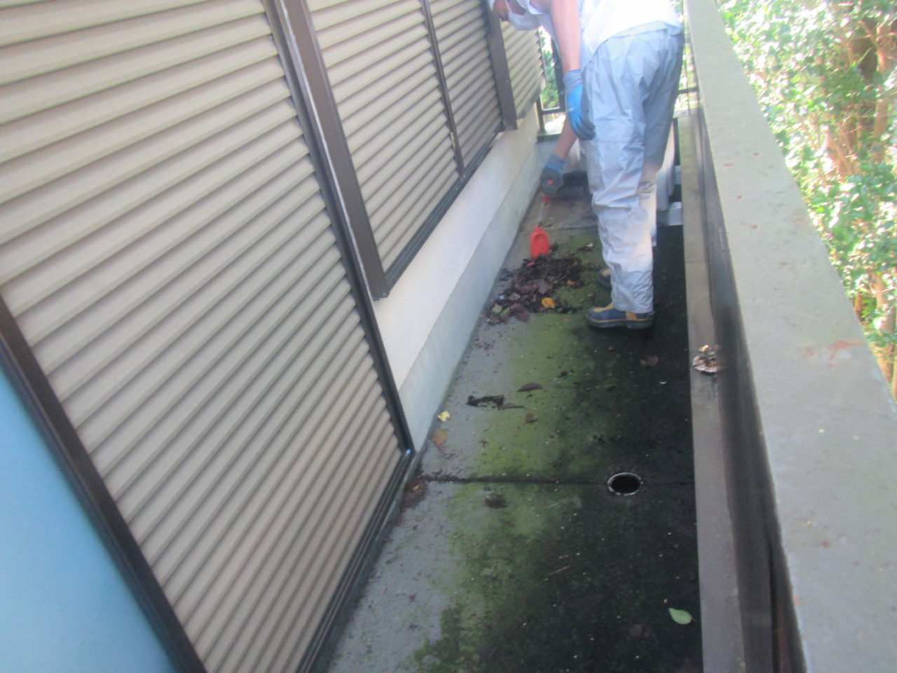 今日は朝からつい先程まで、ベランダの高圧洗浄・排水の点検を行っていました。