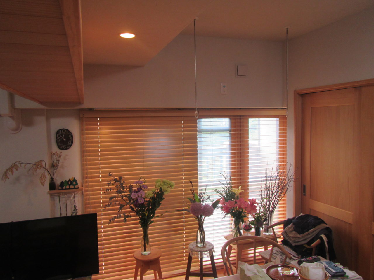 照明の縁やブラインドも建材に近い色で合わせていますので、