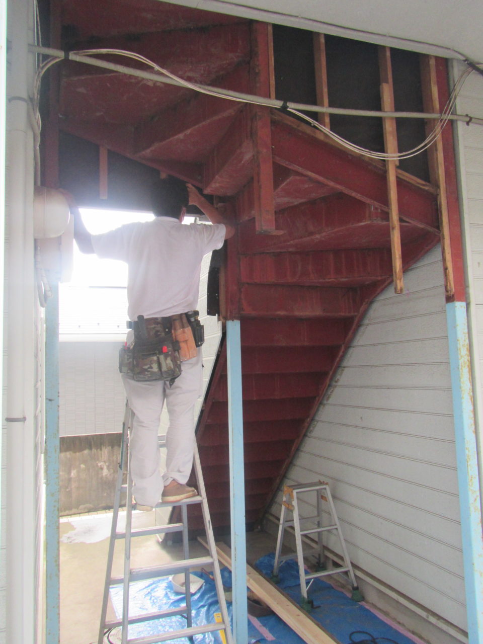 今日の作業は、外装の下地が腐食している箇所がある為、