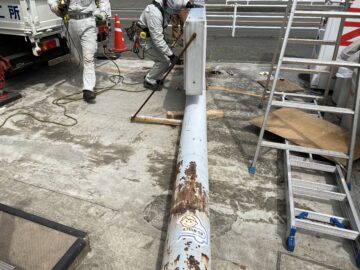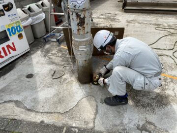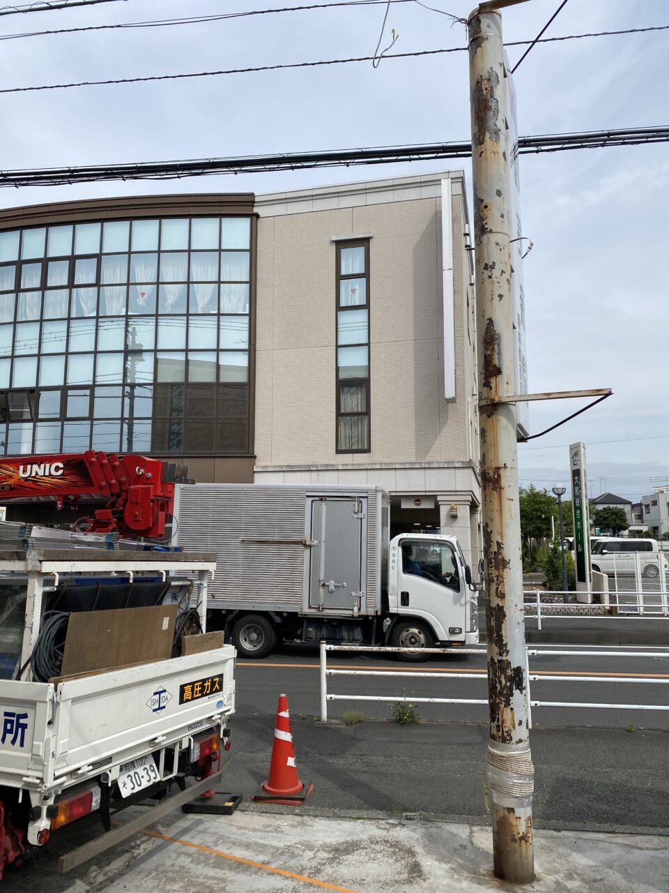 既存鉄柱の撤去です 駐車スペース確保の為 使用していない看板鉄柱の