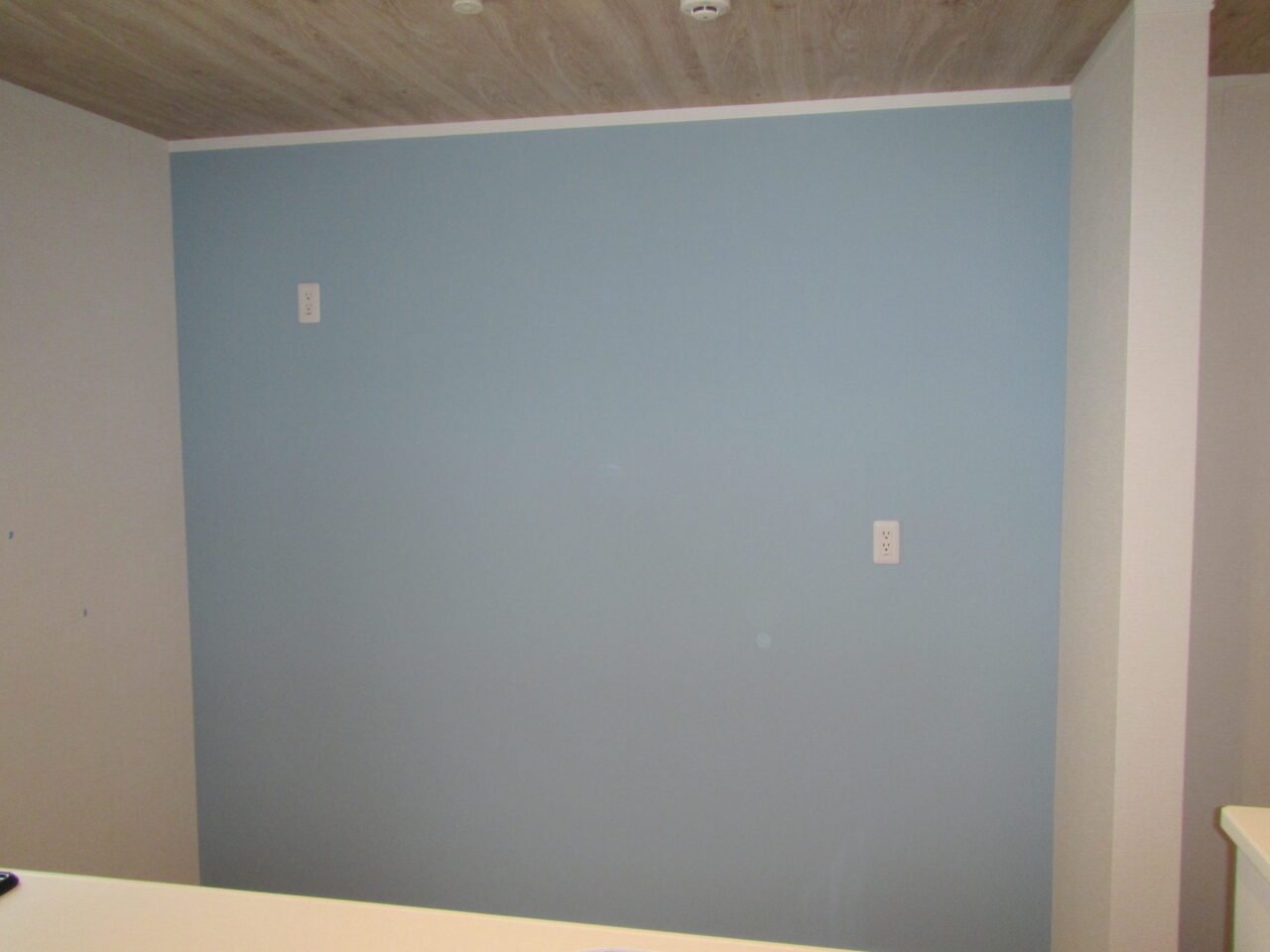 お引越しがある為、養生をつけたままなので薄いブルーに見えますが、