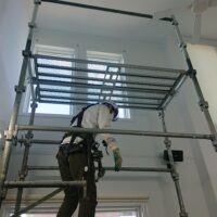 2021年10月8日 / 最終更新日時 : 2021年10月9日 藤田 雅之 現場日記 内部足場組立 今日は、内部足場の組立です。 現場は、横浜市青葉区です。 足場の建つ部分には、コンパネを引きます。 後日、ロールスクリーンを設置して解体します。
