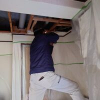 2022年2月21日 / 最終更新日時 : 2022年5月10日 藤田 雅之 現場日記 内装改修工事 上階の漏水工事が完了したので、下の階で工事着工です。 今日は天井補修、電気工事を行い、 明日内装工事に入ります。