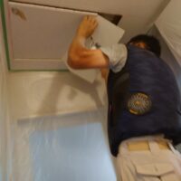2022年7月29日 / 最終更新日時 : 2022年7月29日 藤田 雅之 現場日記 木工事 今日は、以前に上階で漏水した為、 天井の部分張替え、下地補強、断熱材の交換をします。 照明器具も濡れてしまった為、 交換して無事に完了です。