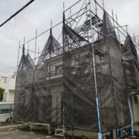 2022年8月20日 / 最終更新日時 : 2022年9月7日 藤田 雅之 現場日記 仮設足場組立 今日から、外装改修工事着工です。 今回もしっかりした足場を組んでもらいました。 今の季節は台風や雨の心配がある為、風が抜けるように メッシュシートは絞ってくれています。