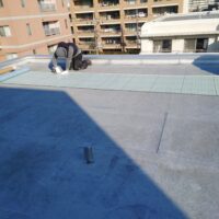 2023年1月16日 / 最終更新日時 : 2023年1月18日 藤田 雅之 現場日記 バルコニー防水 今日は、バルコニー防水工事の紹介です。 下地処理まで終わり、朝一はシート貼りからです。 北面なので乾きが心配でしたが、 1日一工程ずつ、順調に進んでいます。