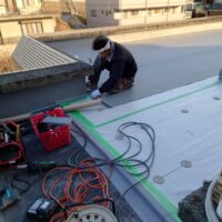 2023年2月11日 / 最終更新日時 : 2023年2月13日 藤田 雅之 現場日記 防水工事7日目 防水工事7日目です。 誘導加熱装置でIHディスクを加熱し、シートと接合します。 シールの打ち忘れが無いかを確認して完了です。 来週から仮設足場の組立がはじまりますので、しっかりと養生をして 進めていきます。