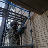 2023年3月30日 / 最終更新日時 : 2023年6月3日 藤田 雅之 現場日記 浮き補修 タイル屋さんに少し煽られながら、 外壁の浮き補修が行われています。 目地補修までにはギリギリで注入が終わりそうです。