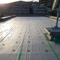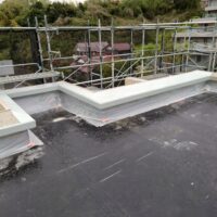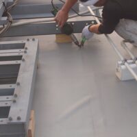 2023年4月12日 / 最終更新日時 : 2023年6月3日 藤田 雅之 現場日記 屋上防水 屋上の防水工事も順調に進んでいます。 斜壁・ガラス庇廻りから雨水が入りやすいので、 防水工事後にタイル目地を再度詰めて、防水塗料で仕上げます。