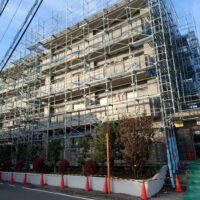 2023年12月15日 / 最終更新日時 : 2023年12月15日 藤田 雅之 現場日記 足場解体1日目 今日から仮設足場の解体です。 解体しながら壁繋のタイル張り、共用部では長尺シートの溶接が行われ、 工程通りに来週には全工程完了となります。