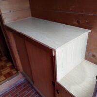 2024年5月21日 / 最終更新日時 : 2024年5月24日 藤田 雅之 現場日記 玄関収納補修 今日は、玄関収納の補修工事です。 天端が劣化して剥がれている為、化粧板を固定します。 類似の色が無く、オーク色で合わせました。 端部にはジョイントコークを打って完了です。