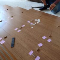 2025年8月30日 / 最終更新日時 : 2025年8月8日 藤田 雅之 現場日記 フローリング貼り 今日からフローリング貼りです。 メーカーによってスペーサーの位置が異なりますが、 今回は短手には全列、長手には2列空けて設置していきます。