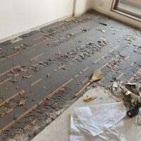 2025年8月25日 / 最終更新日時 : 2025年8月8日 藤田 雅之 現場日記 フローリング貼替え 今日は、賃貸マンションのフローリング貼替え工事です。 直貼りなので、フローリング表面を剥がしてから、 裏面のクッション材を剥がします。