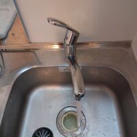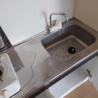 2025年9月24日 / 最終更新日時 : 2025年9月13日 藤田 雅之 現場日記 設備工事 今日は、ミニキッチンの水栓とガスコンロの交換です。 施工前 バルブを開けると水栓から水が出てきます。 施工後 給水管廻りや床に染みた跡は無かったのでガスコンロのパッキンで 上手く止水出来ていたようです。