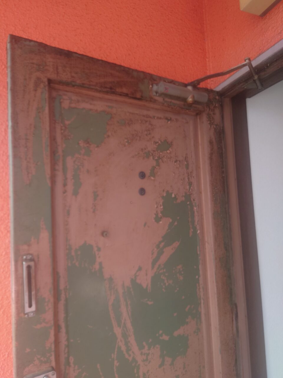 2024年7月29日 / 最終更新日時 : 2024年7月29日 藤田 雅之 現場日記 玄関塗装 今日は、玄関ドア内側と枠の塗装です。 経年による汚れと剥がれがひどい状態でした。 ケレン・清掃後に錆止めを塗布し、ライトグレーで 中塗り・上塗りを施して完了です。 FacebooktwitterHatenaPocket