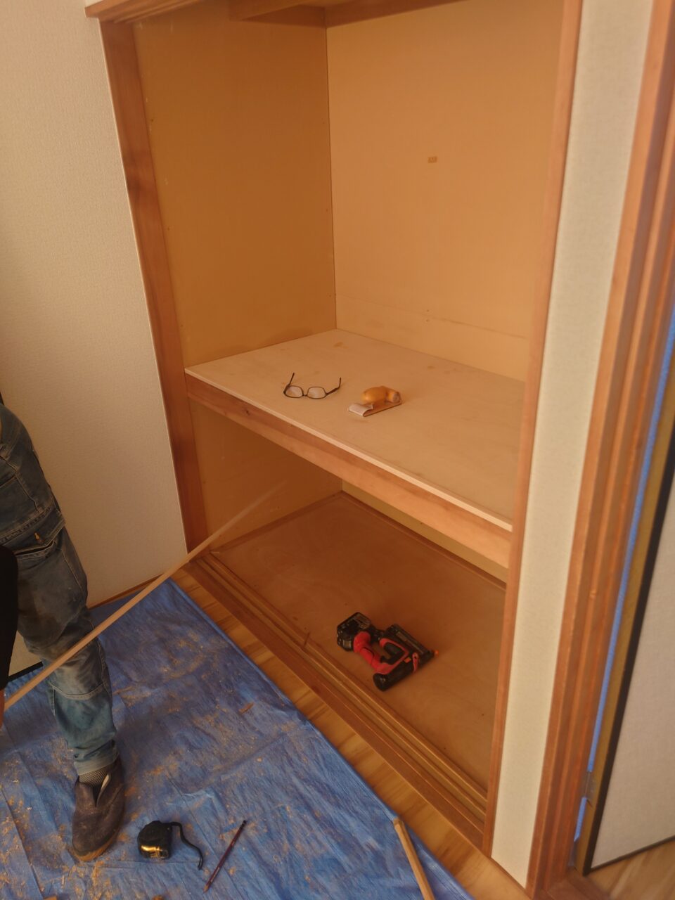 2024年8月27日 / 最終更新日時 : 2024年8月27日 藤田 雅之 現場日記 押入中段補強 今日は、押入中段補強工事です。 施工前 施工中 施工後 5.5ミリのベニヤを交換する事も可能ですが、 12ミリのベニヤを貼ることにより強度も増すので上貼りで仕上げました。 FacebooktwitterHatenaPocket