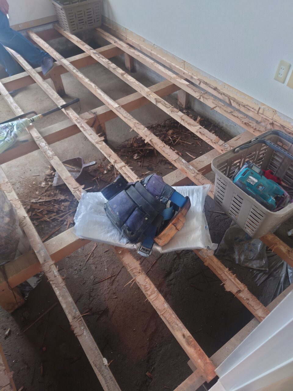 2024年8月29日 / 最終更新日時 : 2024年9月4日 藤田 雅之 現場日記 木工事2日目 昨日に続き、床改修工事の現場です。 根太と床下の清掃をしていると、雨が降ってきました。 まだ断定は出来ませんが、隣のベランダに大きなクラックがあり、 そこから入った雨水が流れ込んできているようです。 シーリングで応急処置を行い、様子を見ます。 FacebooktwitterHatenaPocket