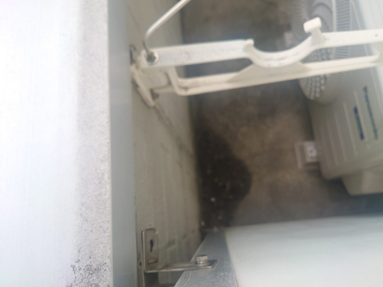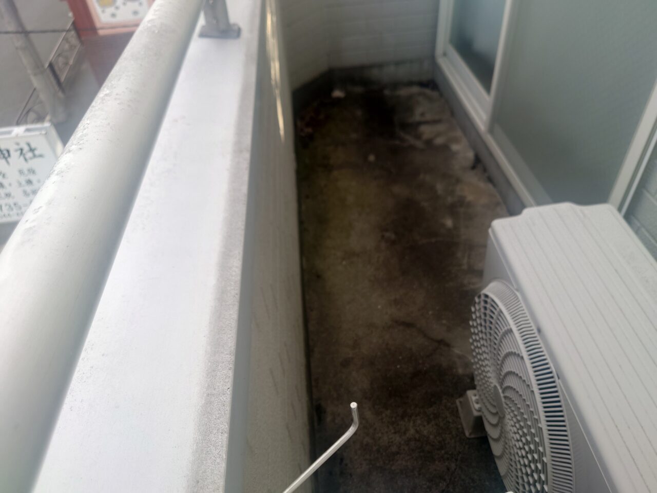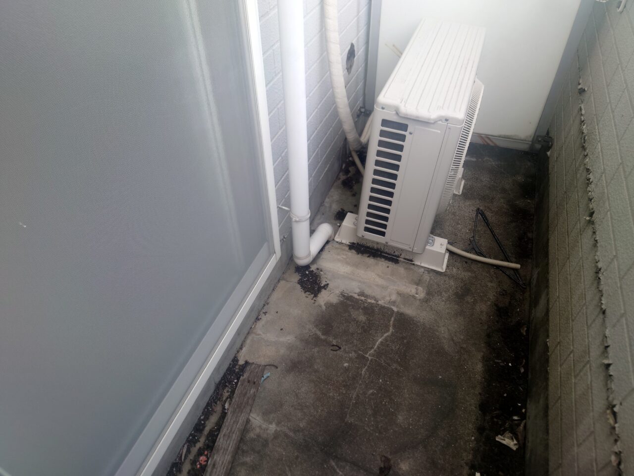 ドレンには土が詰まり、エアコンの水も染み込んでいる状況です。