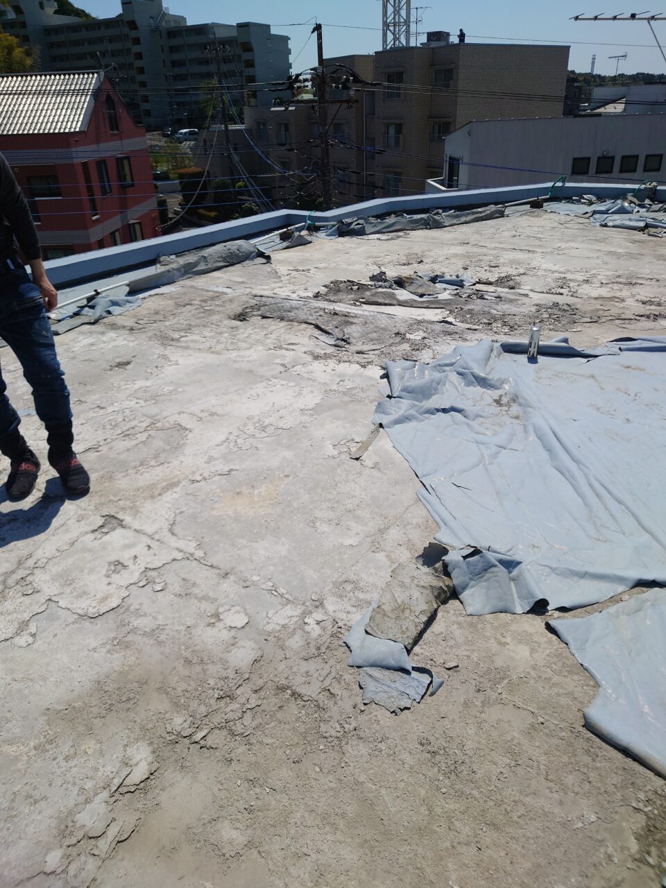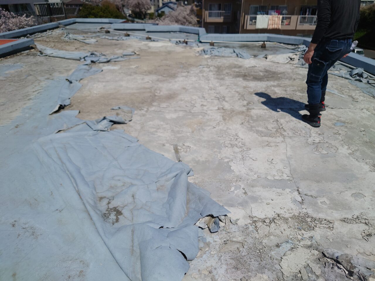 ウレタン防水がキレイに剥がれています。