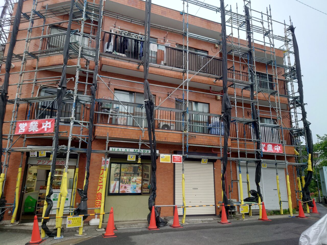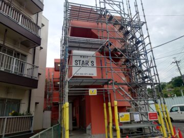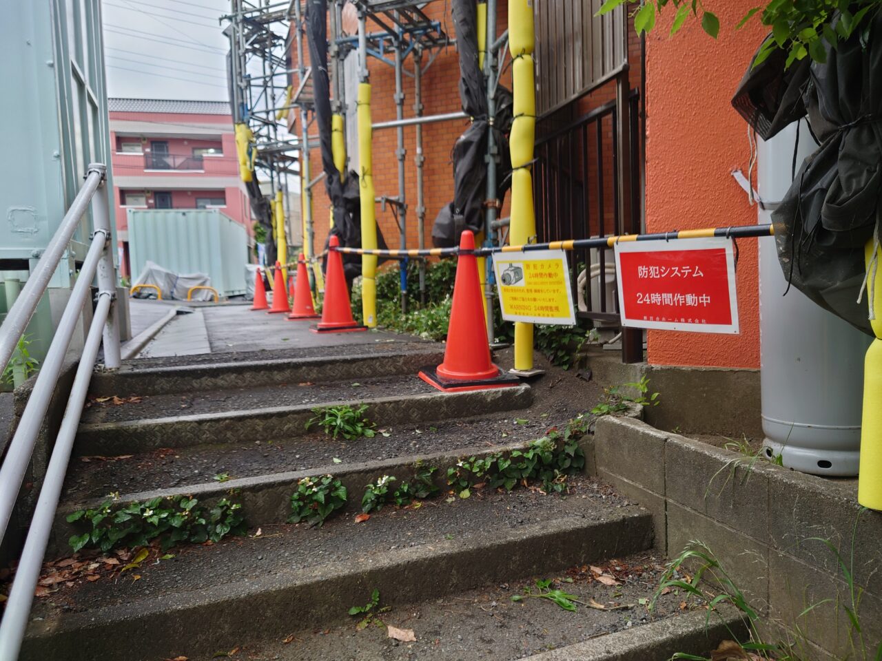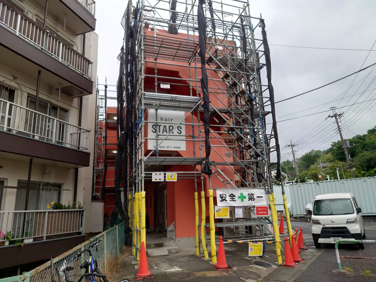 2025年5月24日 / 最終更新日時 : 2025年7月30日 藤田 雅之 現場日記 仮設足場組立2日目 昨日に引続き、仮設足場の組立です。 雨が降ったり止んだりなので染みている箇所が目立ちます。 歩くと妙にふかふかする箇所が多くて気になりますが、 下手に解体出来ないので、少しづつ進める予定です。 FacebooktwitterHatenaPocket