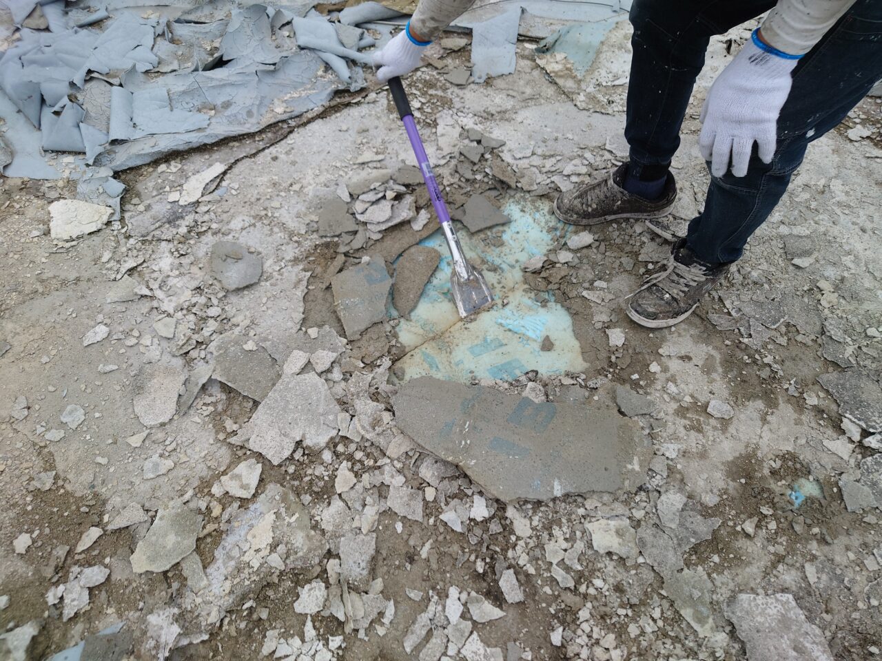 2025年5月26日 / 最終更新日時 : 2025年7月30日 藤田 雅之 現場日記 解体1日目 今日から屋上の解体工事に入ります。 状況が分からない為、人力で慎重に解体します。 解体をはじめて間もなく、断熱材が見えてきました。 スタイロフォームの下にはウレタン防水が施されているので、 間に雨水が溜まっている状況です。 現段階では、スタイロフォームを高さ調整に使用し、 ジョイントの処理もせず、シンダーコンクリートを打設している訳でもないので、 施工不良としか言えません。 FacebooktwitterHatenaPocket