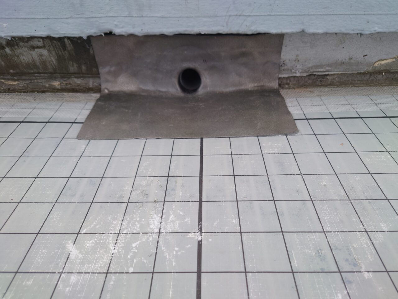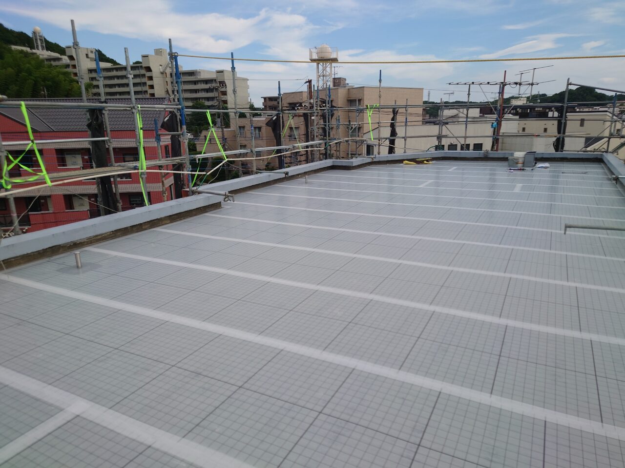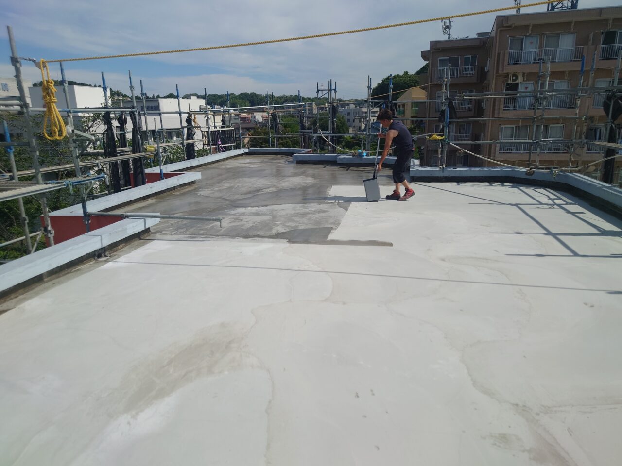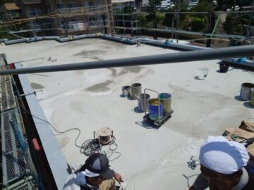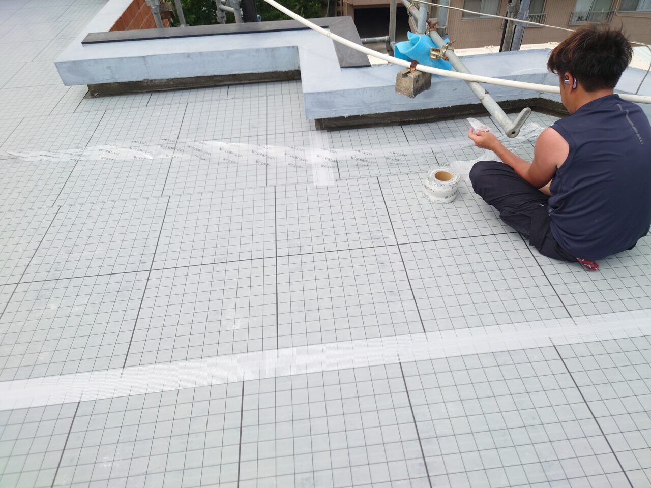 2025年6月24日 / 最終更新日時 : 2025年7月30日 藤田 雅之 現場日記 防水工事1日目 今日は、清掃後にプライマー塗布・自着シート貼りまで進めます。 梅雨の時期にしては真夏のような暑さなので乾きも早く、 改修ドレン・脱気筒設置、ジョイントテープ貼りまで進みました。 FacebooktwitterHatenaPocket