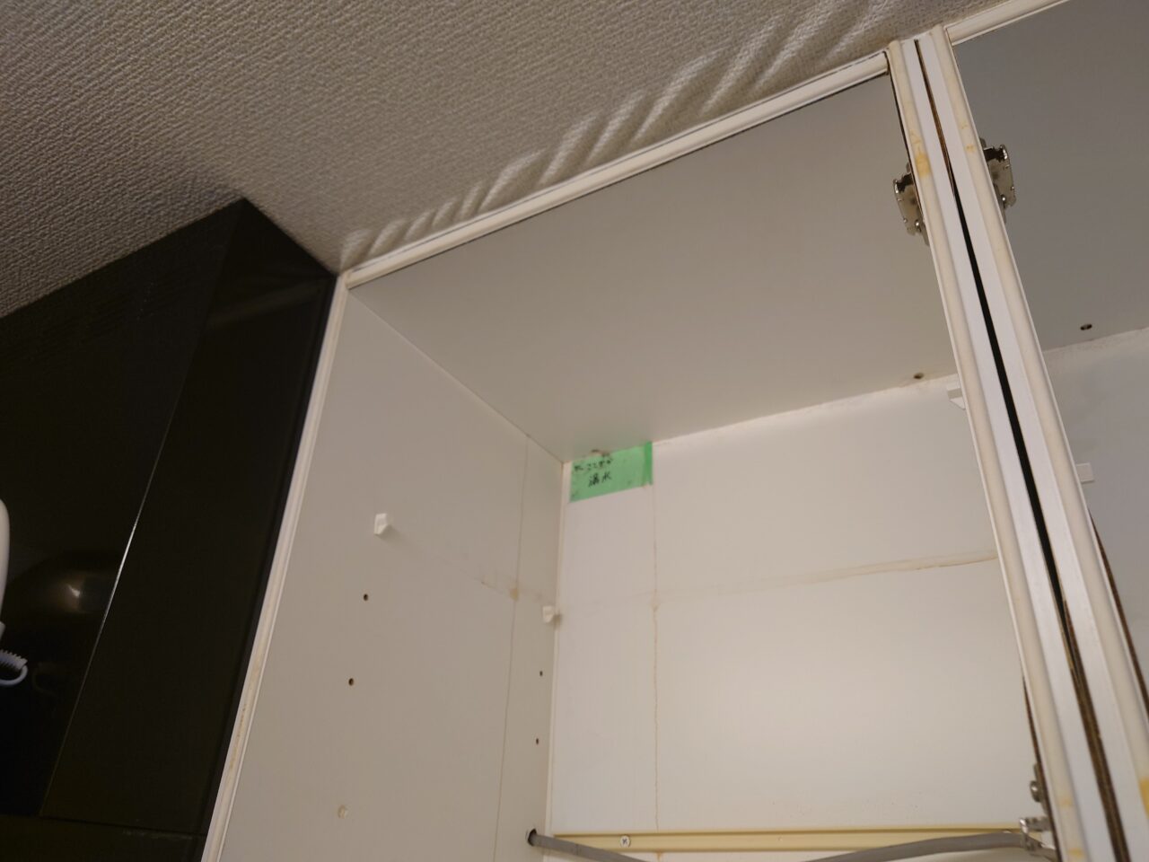 2025年9月8日 / 最終更新日時 : 2025年9月8日 藤田 雅之 現場日記 漏水復旧工事 今日は、以前に給湯管から漏水したお部屋の下の階で工事です。 施工前 施工中 施工後 吊戸・棚下灯・下台のエンドパネルを交換しました。 クロスは糊付け品の残りがあったので、少しだけ張り込みました。 ※天井のクロスは自分が張ったので、見た目に関しては説明してご了承いただいています。 FacebooktwitterHatenaPocket