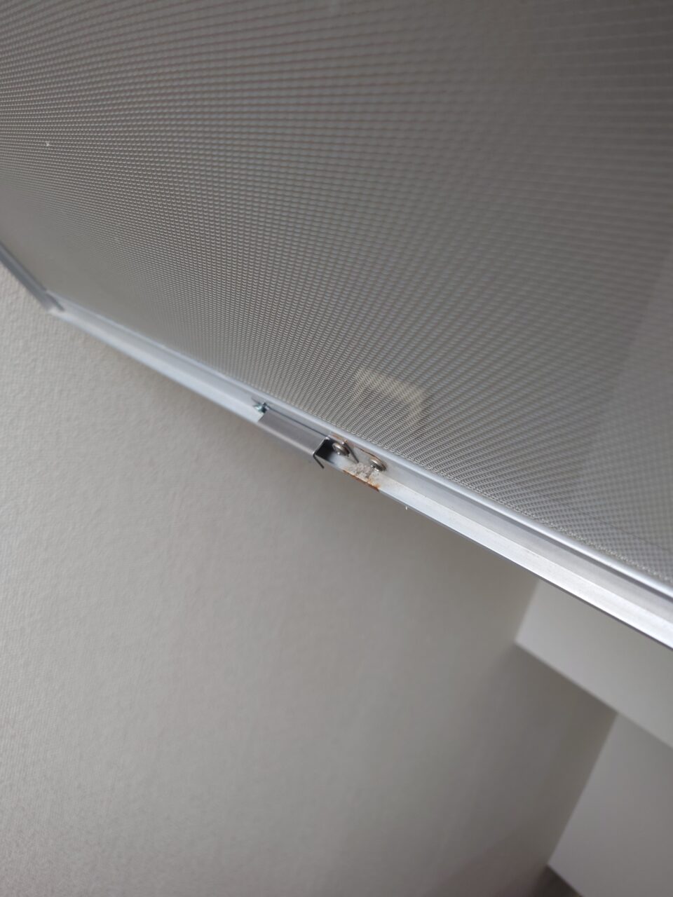 2025年9月30日 / 最終更新日時 : 2025年9月22日 藤田 雅之 現場日記 網戸 今日は、網戸のマグネットキャッチの交換です。 施工前 施工後 既存部品の供給が終了しており、 少し大きめの部品で位置をずらして設置しました。 FacebooktwitterHatenaPocket
