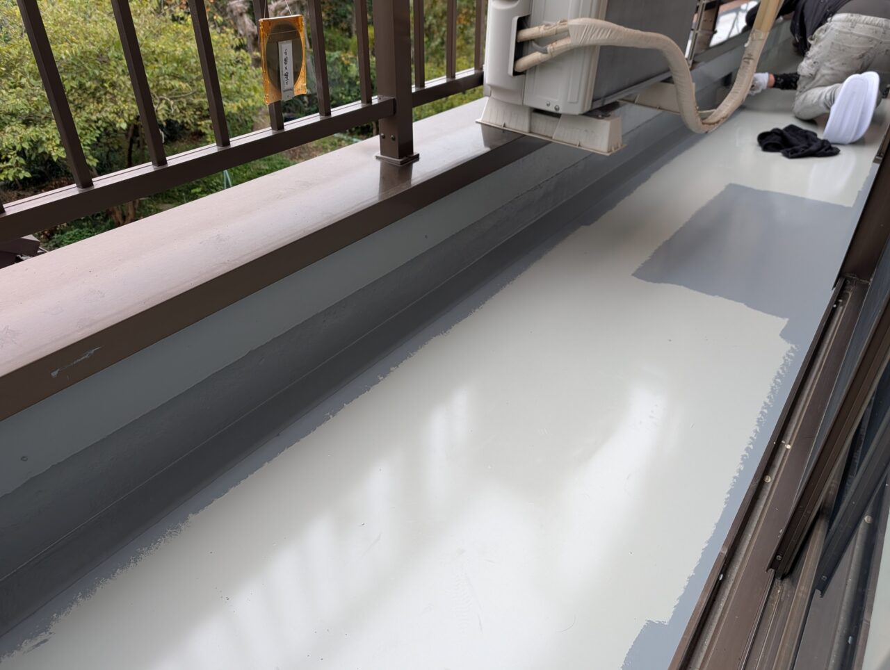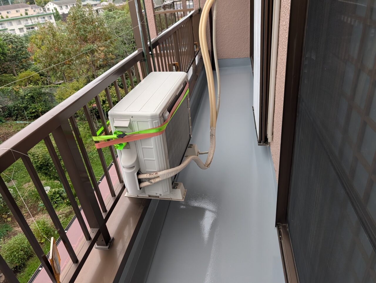 2025年10月21日 / 最終更新日時 : 2025年10月21日 藤田 雅之 現場日記 防水工事 今日は、ベランダ防水工事のトップコートです。 ここのところ雨が降ったり止んだりでしたが、 タイミングよく作業に入れたので、予定通り進みました。 明日の午後に室外機の復旧と清掃をして完了となります。 FacebooktwitterHatenaPocket