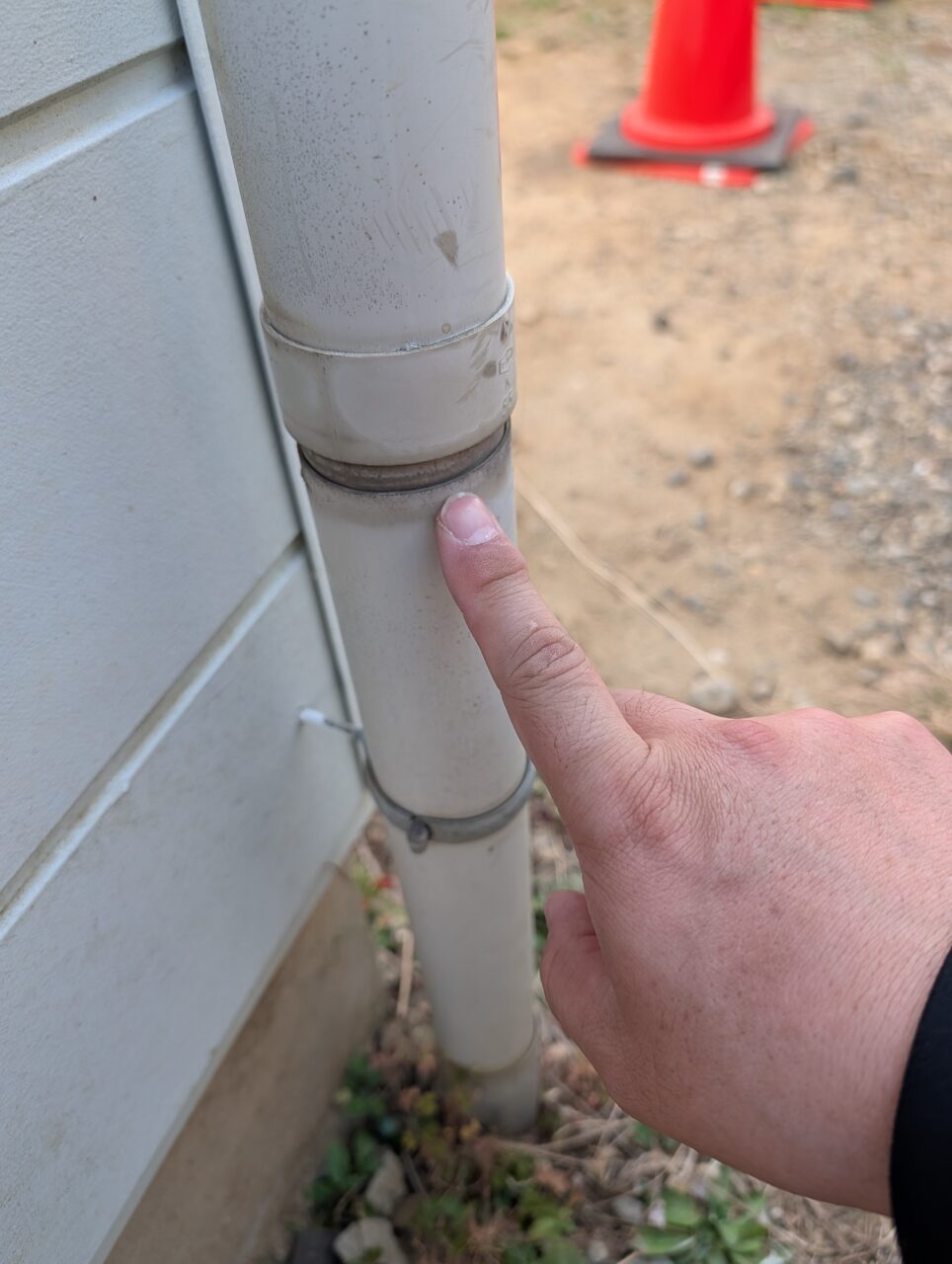 竪樋が割れているとの情報でしたが、接続不良は何箇所かあるので、