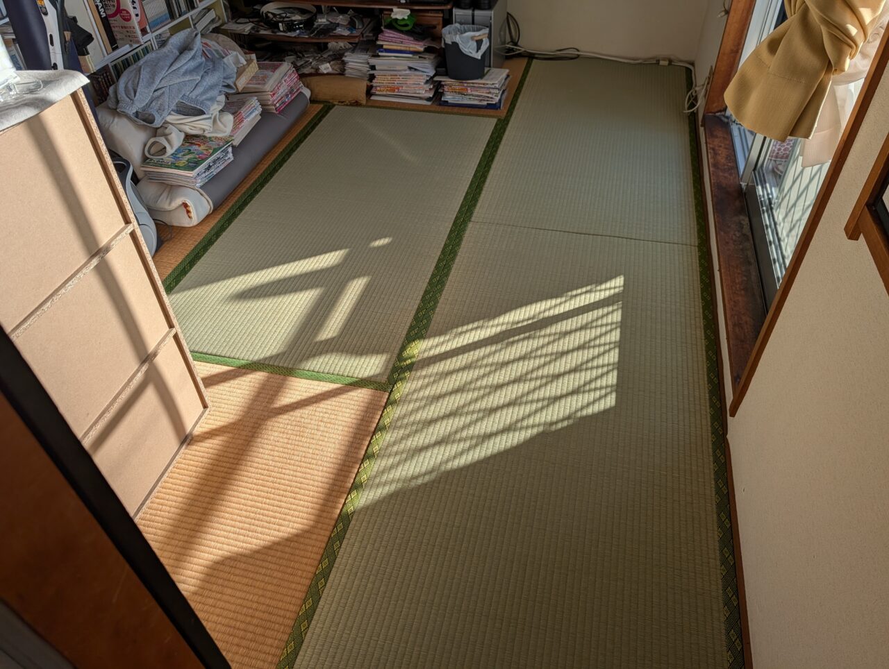 2025年12月8日 / 最終更新日時 : 2025年12月12日 藤田 雅之 現場日記 畳・襖納め 先週の土曜日に納めた現場です。 在宅なので畳は抜ける箇所だけ表替えです。 襖の表はクロス張りにしたので、汚れても拭けるようになりました。 FacebooktwitterHatenaPocket