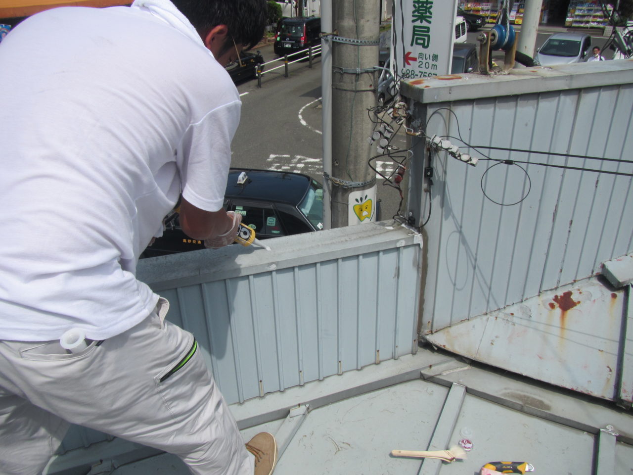 外壁、屋根廻りを隅々確認し、あやしい箇所はビスの締め直しやコーキング処理を行います。