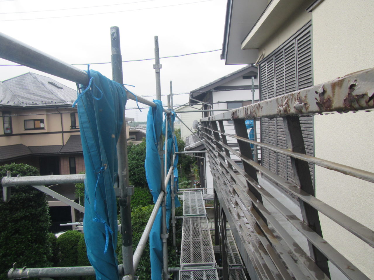 2020年7月17日 / 最終更新日時 : 2020年7月17日 藤田 雅之 現場日記 鉄部塗装工事① 以前紹介した、ベランダ等鉄部塗装の工事が今日からはじまりました。 今日は仮設足場の設置でした。 川崎市麻生区にお住まいのお客様です。 通常であればメッシュシートを張った状態にしますが、 今の時期は天候が不安定な為、強風にあおられないようにシートは閉じています。 明日から、高圧洗浄 → 塗装 → 防水工事 → 足場解体 という工程ですすめていきますので、 進捗状況も紹介していきたいと思います。 FacebooktwitterHatenaPocket