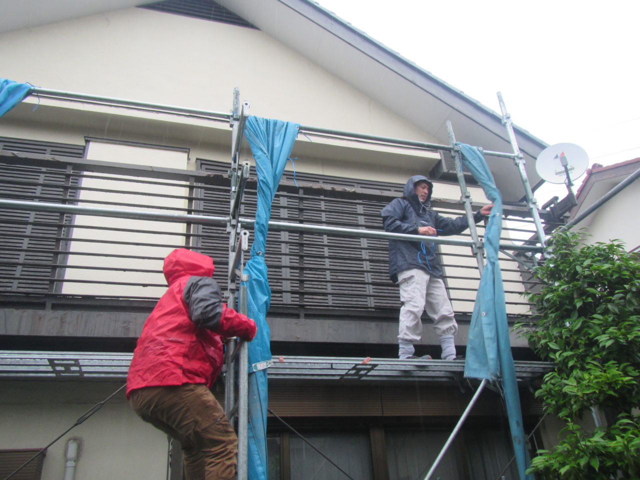 2020年7月18日 / 最終更新日時 : 2020年7月20日 藤田 雅之 現場日記 鉄部塗装工事② 昨日に引き続き、鉄部塗装の現場です。 今日は朝から雨が強く、足場も滑りやすい状態でした。 雨で足場が滑りやすい為、いつも以上に慎重に登ります。 水や汚れが飛び散らないように、メッシュシートを張ります。 防水工事も行う為、鉄部だけではなく、ベランダ床の汚れも落とします。 メッシュシートを張り、作業の確認をしたところで、 次の現場へ向かう時間になってしまいましたので、 続きはまた後日、紹介します! FacebooktwitterHatenaPocket