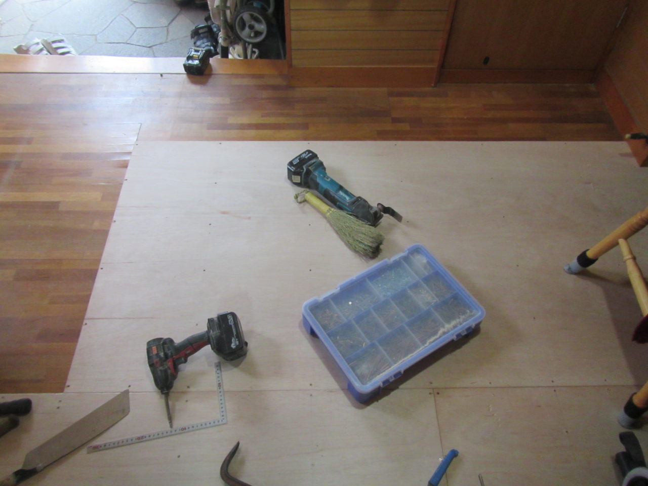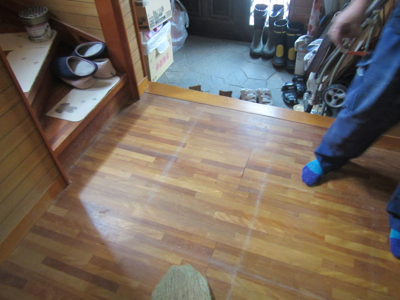 2020年7月30日 / 最終更新日時 : 2020年8月3日 藤田 雅之 現場日記 内装改修工事④ 今日は、廊下の補強工事です。 所々、床がぶかぶかしています。 既存フローリングにラワンベニヤ(12mm)を上貼りして、 クッションフロアで仕上げます。 框上の見切は、材料を加工してその場で造ってもらいました。 仕上がりの写真はまた後日、紹介します。 FacebooktwitterHatenaPocket