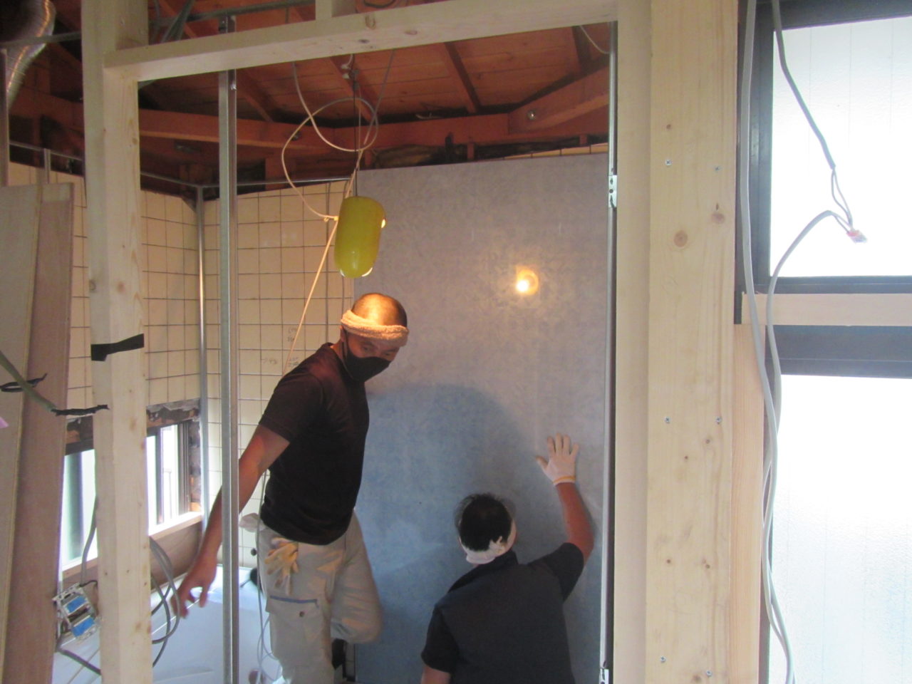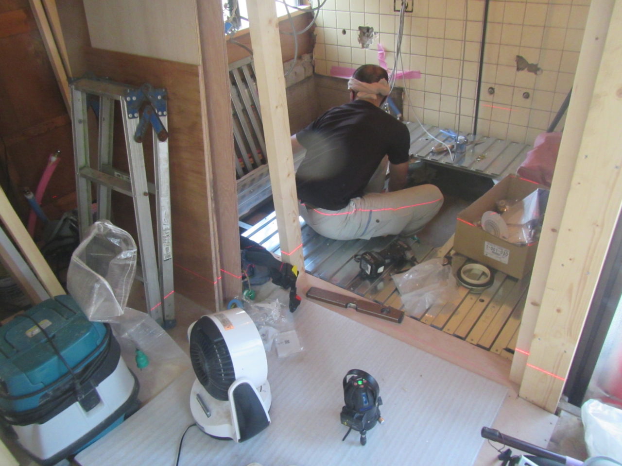 2020年8月1日 / 最終更新日時 : 2020年8月3日 藤田 雅之 現場日記 内装改修工事⑥ 今日はユニットバスの組立です。 今回の仕様は、 TOTO サザナ HTシリーズ Tタイプ 1620サイズ アクセントパネルは、プリズムブルー 周辺パネルは、プリエホワイト 浴槽は、ワイド浴槽 既存の浴室は、洗面室から床が10センチ程下がっていましたが、 バリアフリーにしたので、出入りも容易に出来るようになりました。 来週は木工事も大詰めになり、塗装工事・内装工事も入りますので、 また紹介したいと思います。 FacebooktwitterHatenaPocket