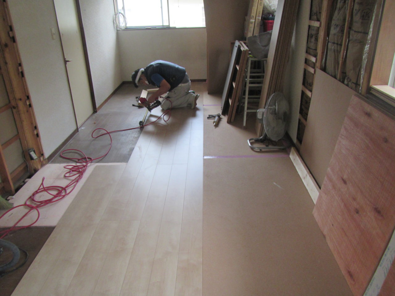 2020年8月29日 / 最終更新日時 : 2020年9月1日 藤田 雅之 現場日記 改修工事③ 今日はフローリング貼りです。 上貼りの為、既存フローリングの床鳴りや弱い所の補強をしてから貼りはじめます。 今回は、Panasonic ベリティスフロアー メープル柄です。 FacebooktwitterHatenaPocket