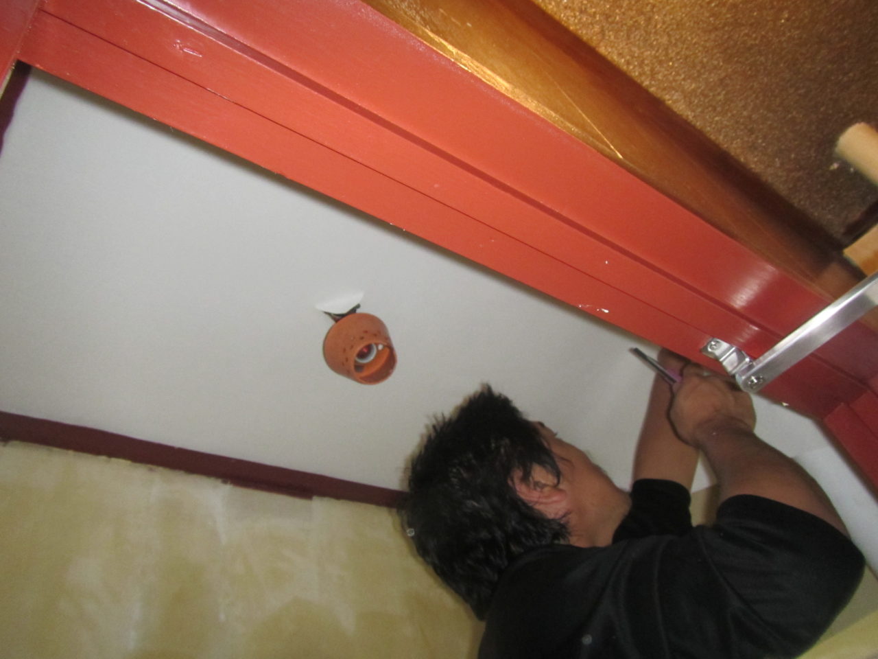 2020年9月3日 / 最終更新日時 : 2020年9月3日 藤田 雅之 現場日記 トイレ内装工事 今日は、トイレの内装工事を行いました。 下紙が上手く付いていない為、下地処理・パテ打ちは時間をかけて行いました。 電気を外して、天井のクロスを張っています。 クロスは、サンゲツ SP9525 CFは、サンゲツ HM-4088 最後に便器を復旧して完了です。 FacebooktwitterHatenaPocket