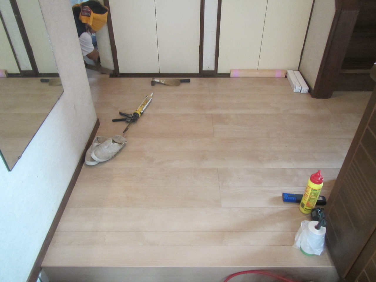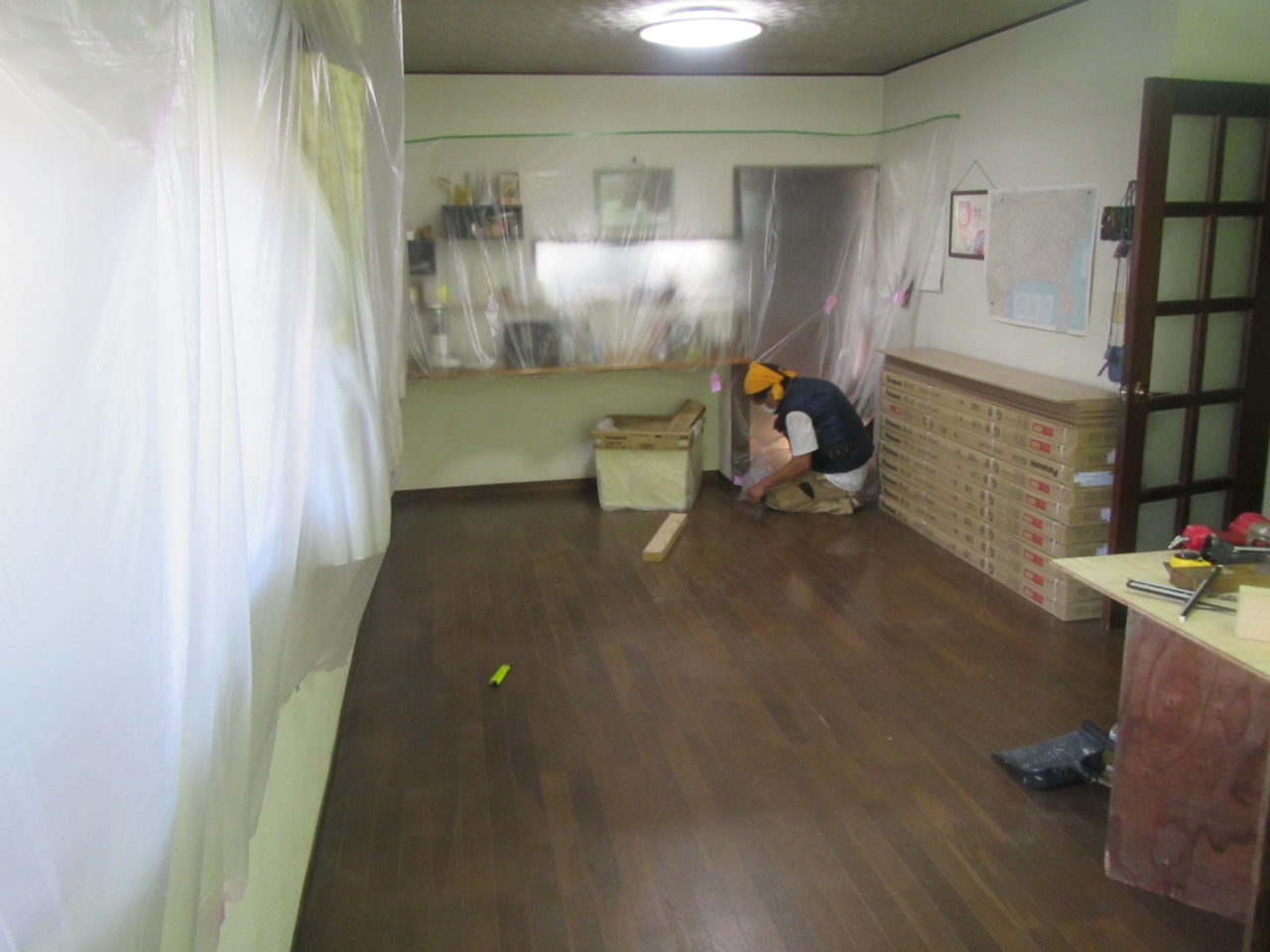 2020年9月9日 / 最終更新日時 : 2020年9月9日 藤田 雅之 現場日記 改修工事④ 今日は、戸建て内装改修工事の現場にいましたので、 進捗状況を紹介します。 玄関框、廊下のフローリング貼りが終わりそうな状況でした。 LDKのフローリング貼りに取り掛かる前に、ソファーやテーブル等の荷物を移動して、 マスカーで養生をしてから貼り始めます。 貼りはじめだけでも進めて、明日明後日でリビング部分を終わらせる予定です。 FacebooktwitterHatenaPocket