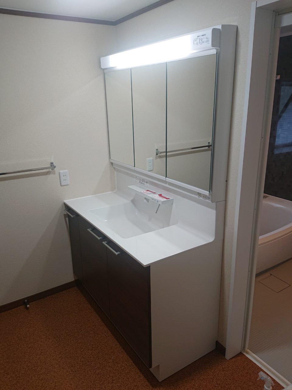 2020年10月27日 / 最終更新日時 : 2020年10月28日 藤田 雅之 現場日記 洗面化粧台設置 内装工事も完了し、洗面化粧台を設置して完了となります。 今回は、TOTO オクターブ 幅:1200mm ラクラクスマート水栓(自動・除菌付) 扉色は、ロイダルブラウン です。 FacebooktwitterHatenaPocket