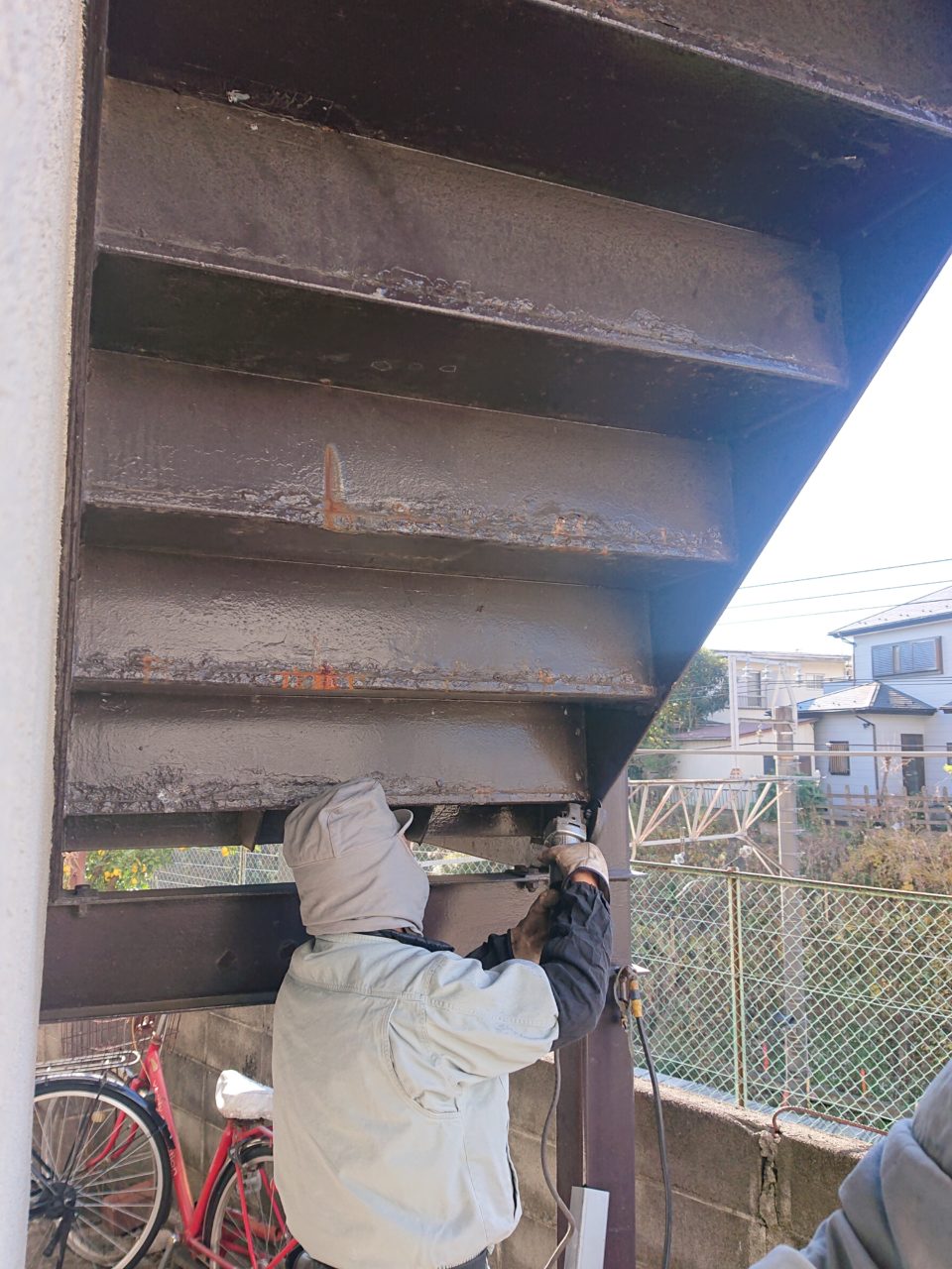 2020年12月15日 / 最終更新日時 : 2020年12月16日 藤田 雅之 現場日記 階段補強工事 今日は鉄骨階段の補強工事が行われました。 ①ケレン・清掃 溶接部のケレン・清掃を行います。 ②溶接 各段の形状に合わせ現地にて加工し、溶接します。 ③完了 錆止め・シーリングを行い、補強工事終了です。 補強が完了したので、塗装工事に入ります。 FacebooktwitterHatenaPocket
