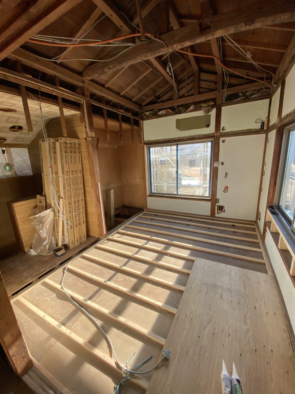 2021年1月30日 / 最終更新日時 : 2021年1月29日 藤田 雅之 現場日記 木工事 今日は戸建て改修工事の現場を紹介します。 横浜市都筑区の現場です。 施工前 施工中 床はフローリング仕上げ、天井・壁には断熱材を設置します。 仕上がりは後日、紹介したいと思います。 FacebooktwitterHatenaPocket
