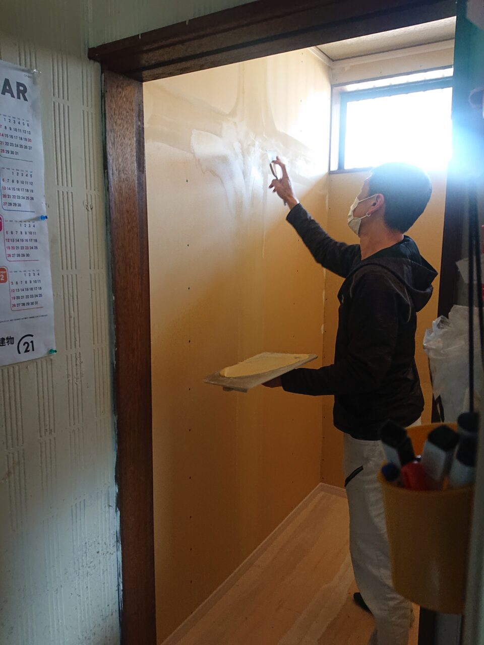 2021年3月24日 / 最終更新日時 : 2021年3月24日 藤田 雅之 現場日記 内装工事 今日は、洗面室の内装工事です。 今回の仕様は、 天井クロス サンゲツ SP-9501 壁クロス サンゲツ SP-9582 CF サンゲツ HM-10173 明後日、洗面化粧台等の器具付けをして完了予定です。 FacebooktwitterHatenaPocket