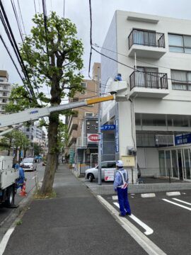 おおよそ1時間にて鉄柱の撤去完了いたしました 歩道の通行人及び車両等も多かったので