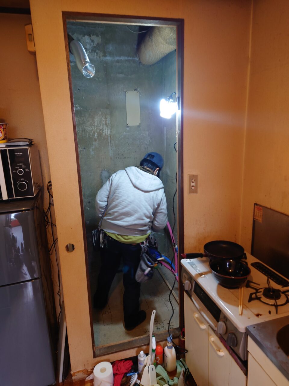 2022年2月4日 / 最終更新日時 : 2022年5月10日 藤田 雅之 現場日記 ユニット現地調査 今日は、漏水工事の現場で現調員さんと打合せです。 スラブ貫通の配管やガス管との干渉が避けられない状況です、 キッチン側の壁を壊して、浴室のスペースを少し広げます。 キッチンとの隙間が空いているので、壁を移動しても問題無さそうです。 FacebooktwitterHatenaPocket