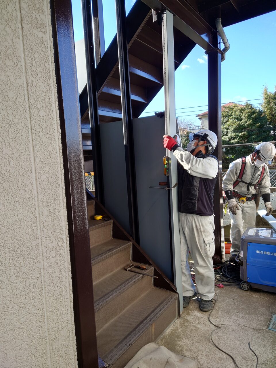 2022年3月7日 / 最終更新日時 : 2022年5月12日 藤田 雅之 現場日記 共用階段改修工事 共用階段改修工事の続きを載せていませんでしたので、 紹介したいと思います。※既に完了しています。 鋼板固定・溶接部分の錆止め塗布を施し、 塗装・笠木設置とすすめます。 FacebooktwitterHatenaPocket