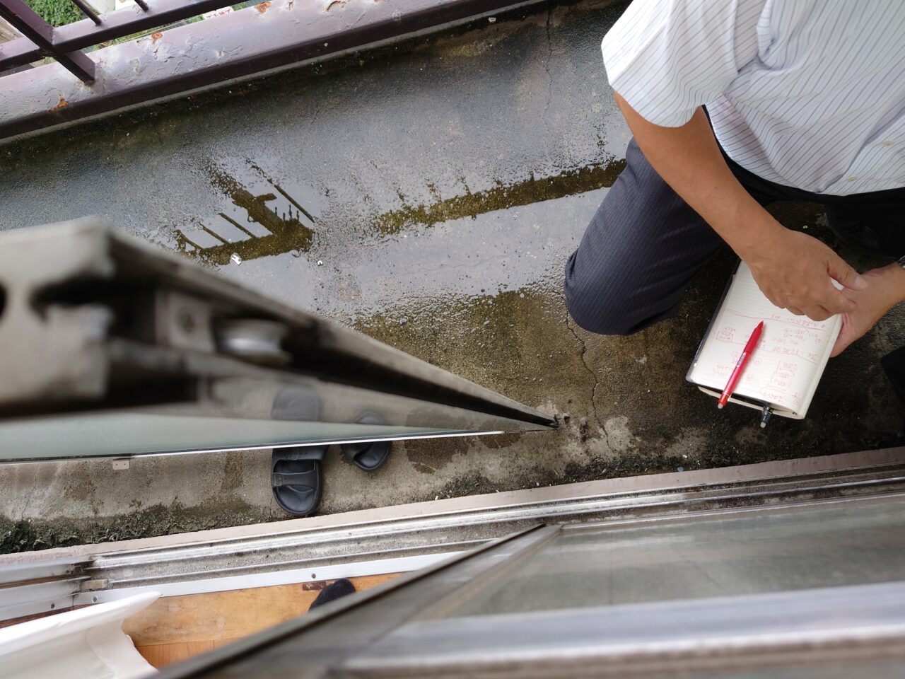 2022年7月21日 / 最終更新日時 : 2022年7月23日 藤田 雅之 現場日記 現地調査 今日は、サッシの開閉がしにくいとの事で現地調査です。 レールが曲り、削られて鉄粉が落ちています。 引き戸用のステンレスの戸車が付いています。 レールが曲がっている為、戸車を交換してもはじめのうちは滑りがいいかもしれませんが、 カバー工法で提案した方が良さそうです。 FacebooktwitterHatenaPocket