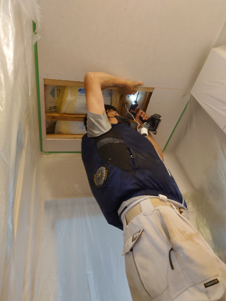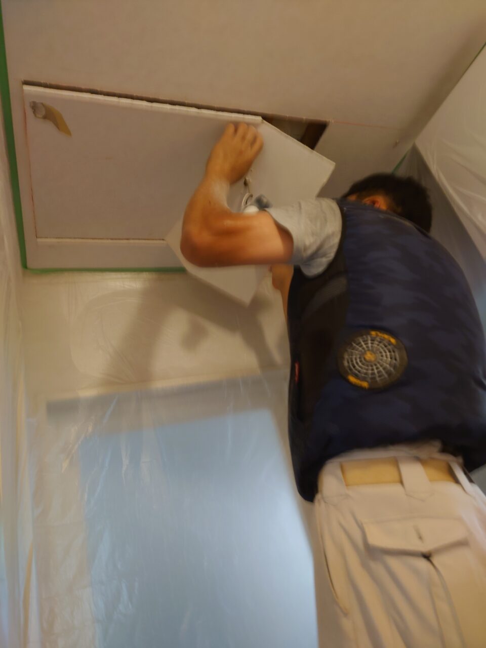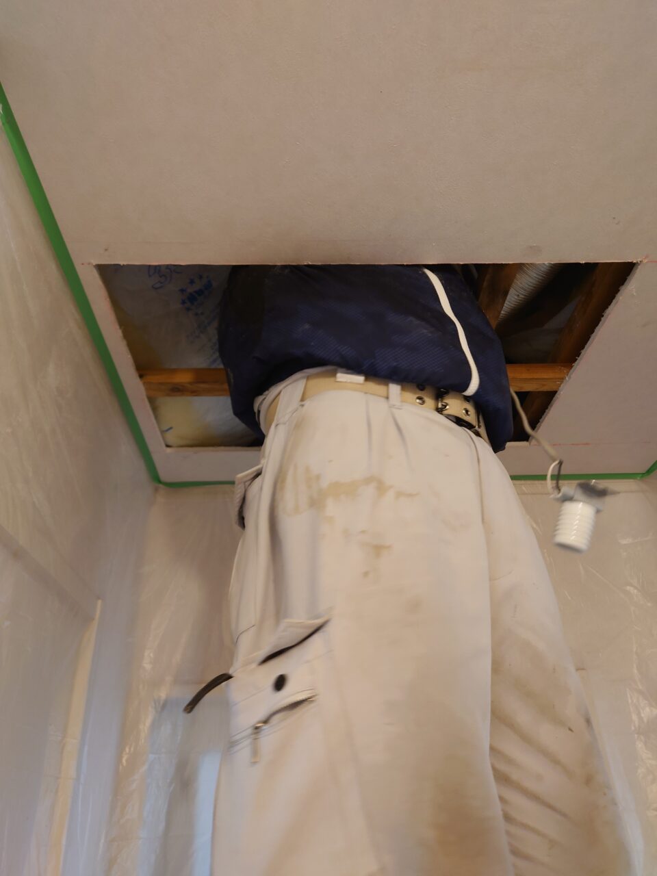 2022年7月29日 / 最終更新日時 : 2022年7月29日 藤田 雅之 現場日記 木工事 今日は、以前に上階で漏水した為、 天井の部分張替え、下地補強、断熱材の交換をします。 照明器具も濡れてしまった為、 交換して無事に完了です。 FacebooktwitterHatenaPocket