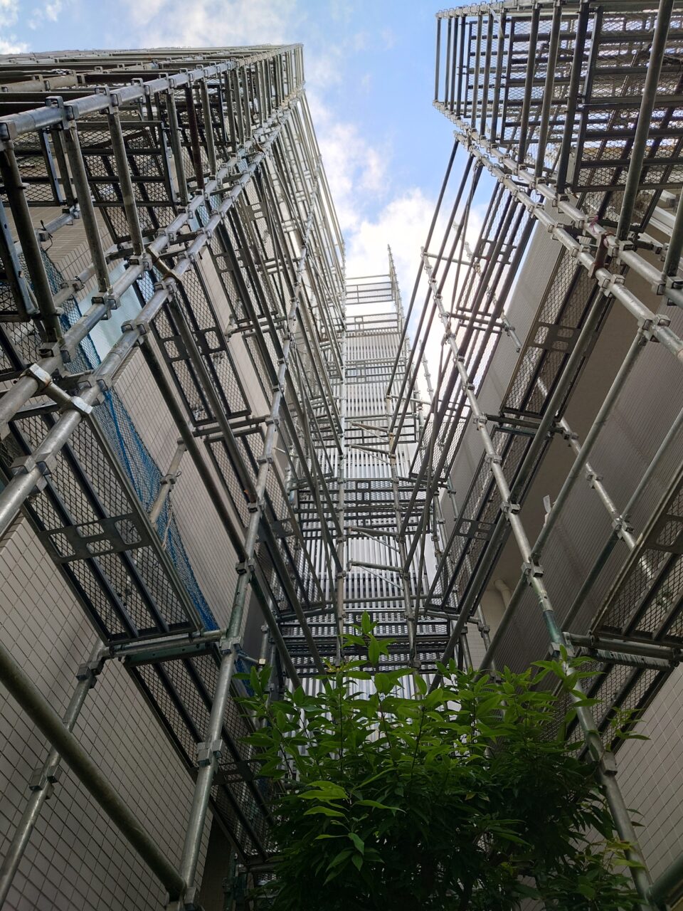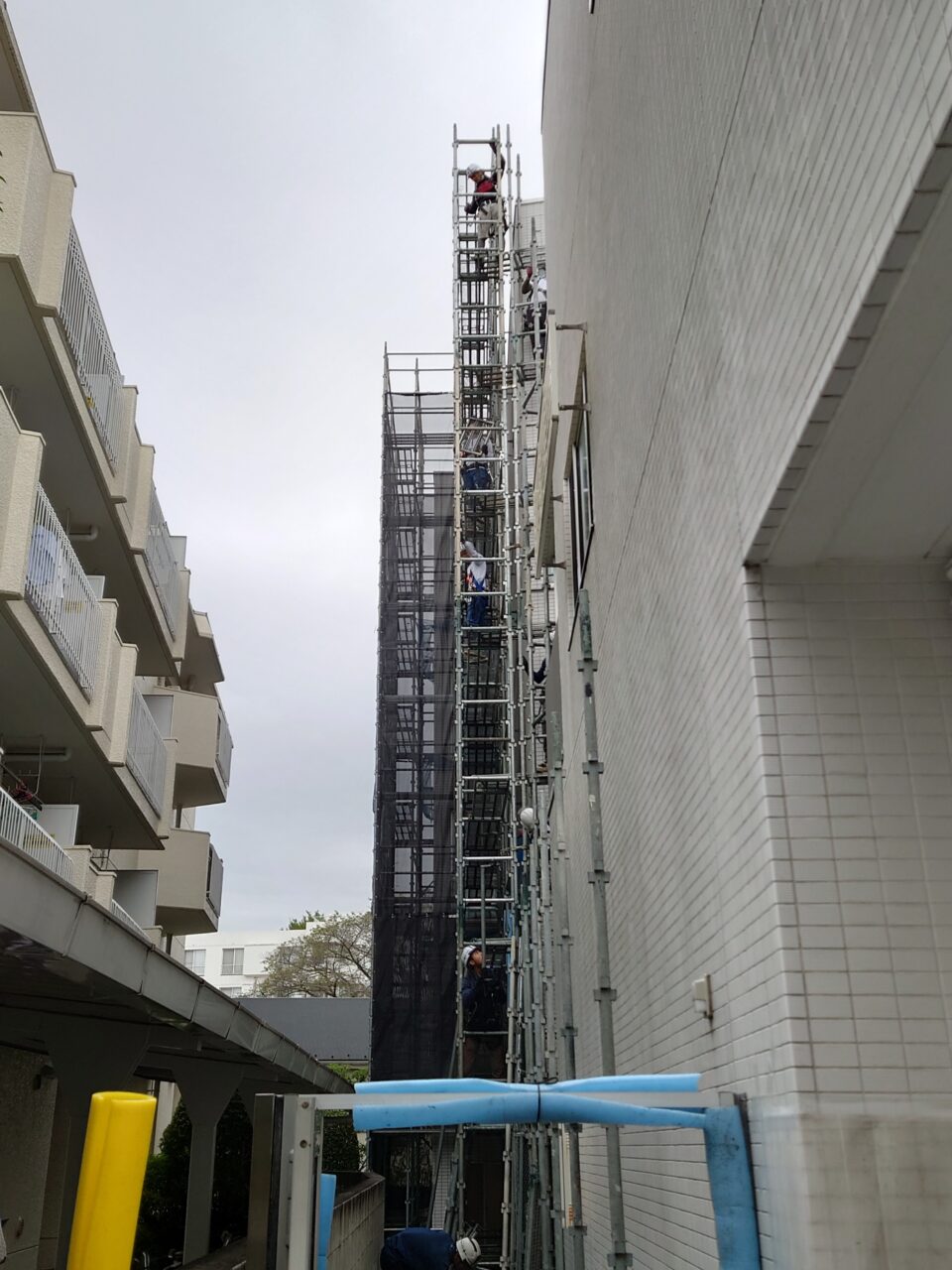 2022年10月18日 / 最終更新日時 : 2022年10月18日 藤田 雅之 現場日記 仮設足場組立2日目 昨日に引続き、仮設足場組立工事です。 朝はラッセルネット・メッシュシート施工からはじまり、 昼前から組立の続きに取り掛かりました。 明日は建物西面を仕上げる予定です。 FacebooktwitterHatenaPocket