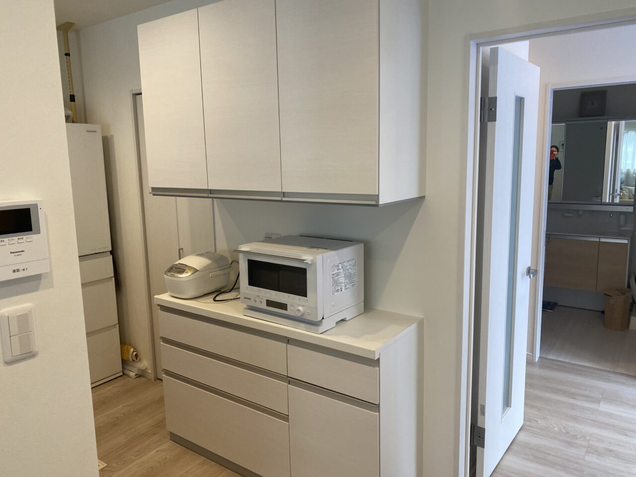 2023年1月25日 / 最終更新日時 : 2023年1月27日 藤田 雅之 現場日記 カップボード設置工事 今日は、カップボード設置工事です。 現場は、品川区です。 施工前 施工後 今回の仕様は、 Panasonic リビングステーション V-style 扉柄:VT20 ホワイトアッシュ柄 取っ手:ライン取っ手(LCA) 横幅:1350 奥行:450 高さ:2200 です。 FacebooktwitterHatenaPocket
